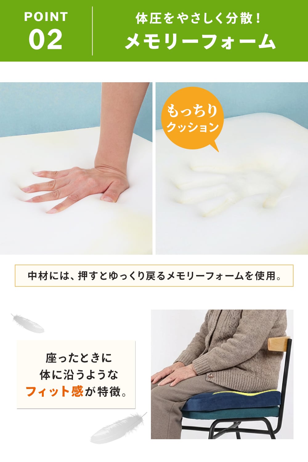 クッション内部には、形を保ちやすいメモリーフォーム中材を使用。